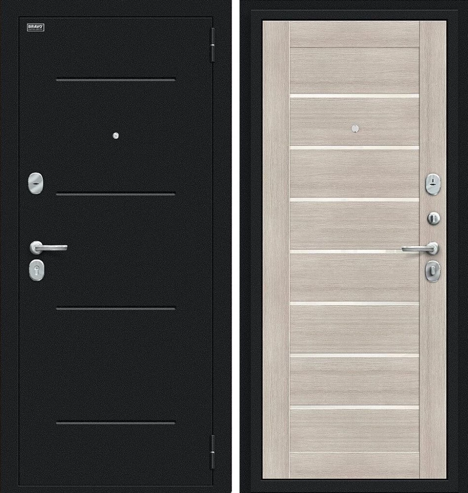 Надежная входная Дверь Браво Техно Букле черное/Cappuccino Veralinga премиум класса по цене 32 780 руб. Большая толщина стали защитит от проникновения в ваш дом, квартиру или коттедж. Используется очень качественная фурнитура: замки, цилиндры, ручки, защелки. Покрытие и отделка двери изготовлено под внимательным контролем производителя. Дверь имеет долгий срок службы и гарантию.
