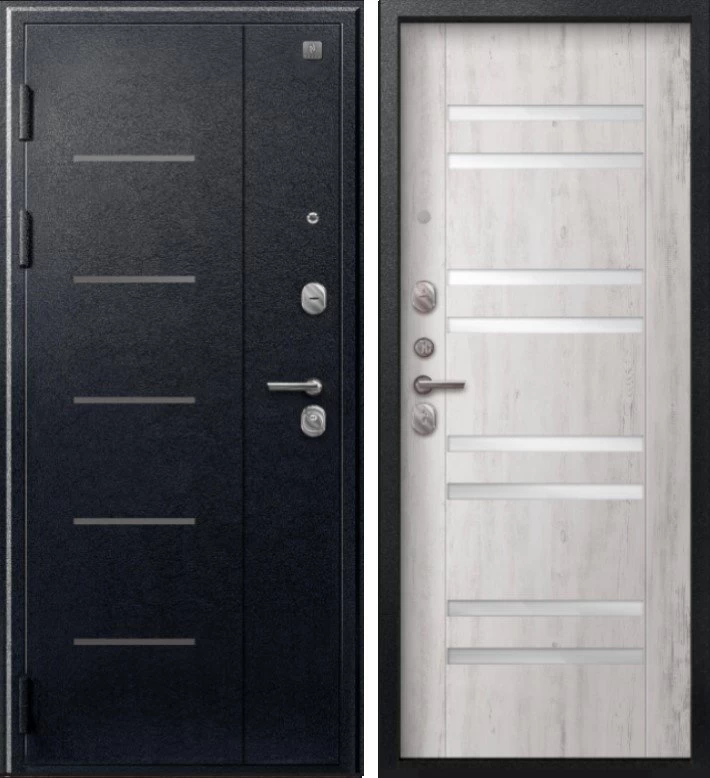 Надежная входная Дверь V-07 Черный муар - Дуб пепельный премиум класса по цене 43 430 руб. Большая толщина стали защитит от проникновения в ваш дом, квартиру или коттедж. Используется очень качественная фурнитура: замки, цилиндры, ручки, защелки. Покрытие и отделка двери изготовлено под внимательным контролем производителя. Дверь имеет долгий срок службы и гарантию.