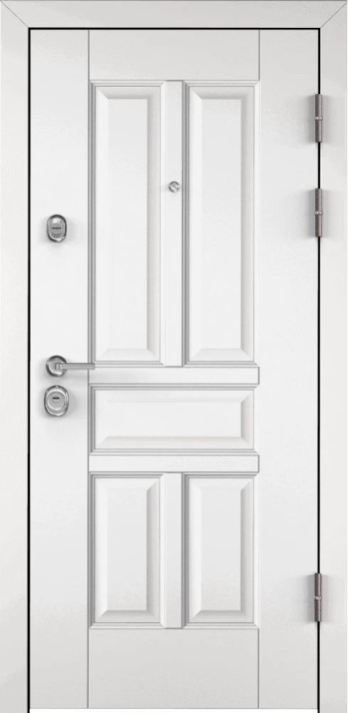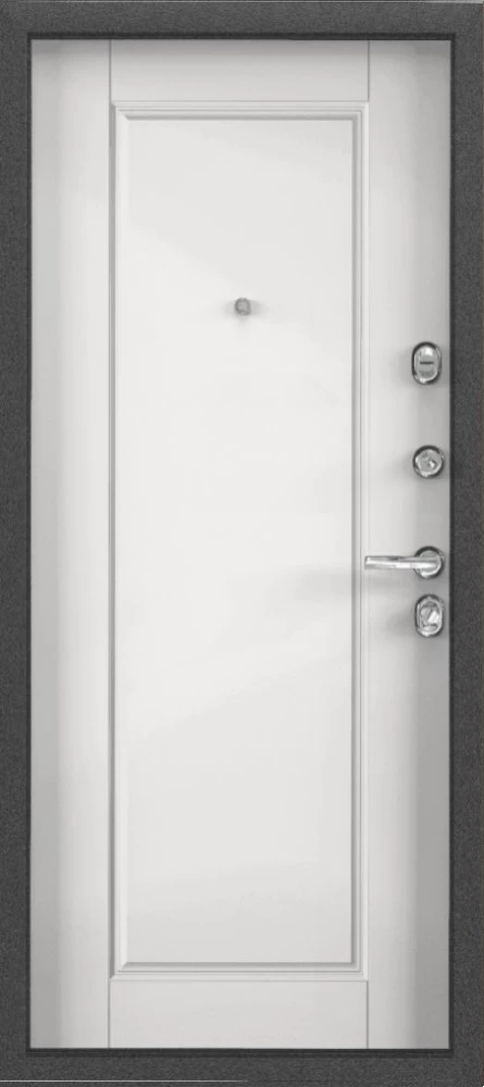 Надежная входная Дверь Цербер 3К Чёрный муар Мистраль Белый Сменная панель премиум класса по цене 43 930 руб. Большая толщина стали защитит от проникновения в ваш дом, квартиру или коттедж. Используется очень качественная фурнитура: замки, цилиндры, ручки, защелки. Покрытие и отделка двери изготовлено под внимательным контролем производителя. Дверь имеет долгий срок службы и гарантию.